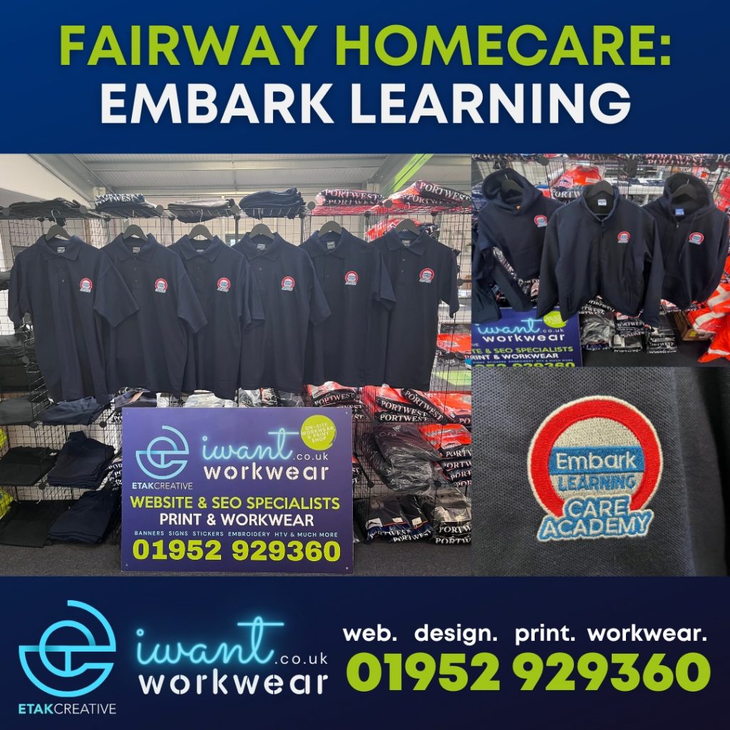 Last week, we were hard at work providing embroidered workwear for Embark Learning. We’ve embroidered a number of dark blue polo shirts, fleeces and hoodies (including one children’s size).