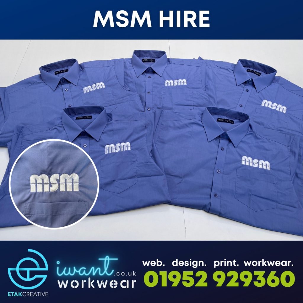 Whether it’s for the construction site or for the office, we can help! 👔 Embroidered shirts like these light blue ‘Uneek’ short sleeve Poplin shirts for MSM Hire.