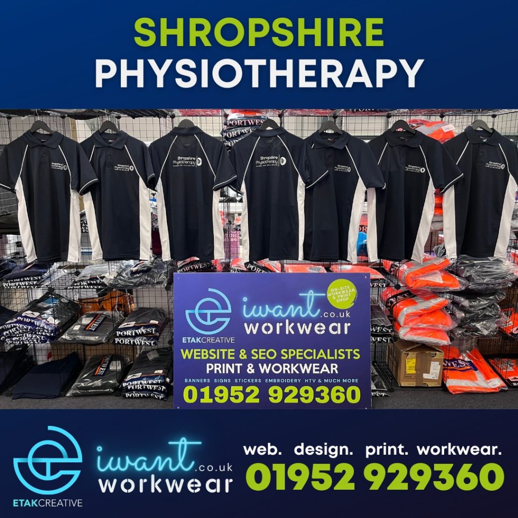 Today, we’ve been customing some lightweight, breathable polo shirts with custom front embroidery and vinyl printing on the back. These shirts are for Shropshire Physiotherapy, an excellent and caring physiotherapy clinic based in Newport, Shropshire.